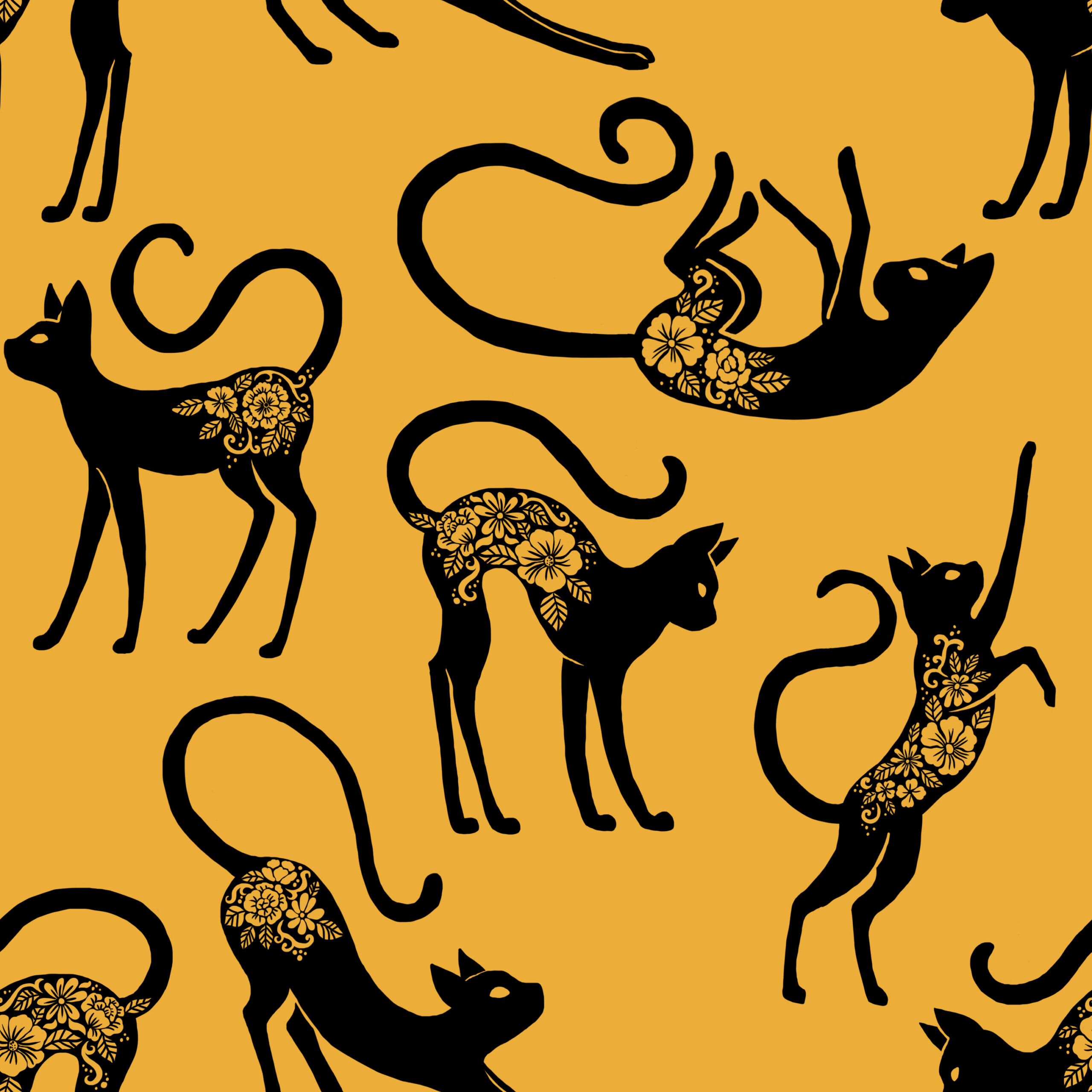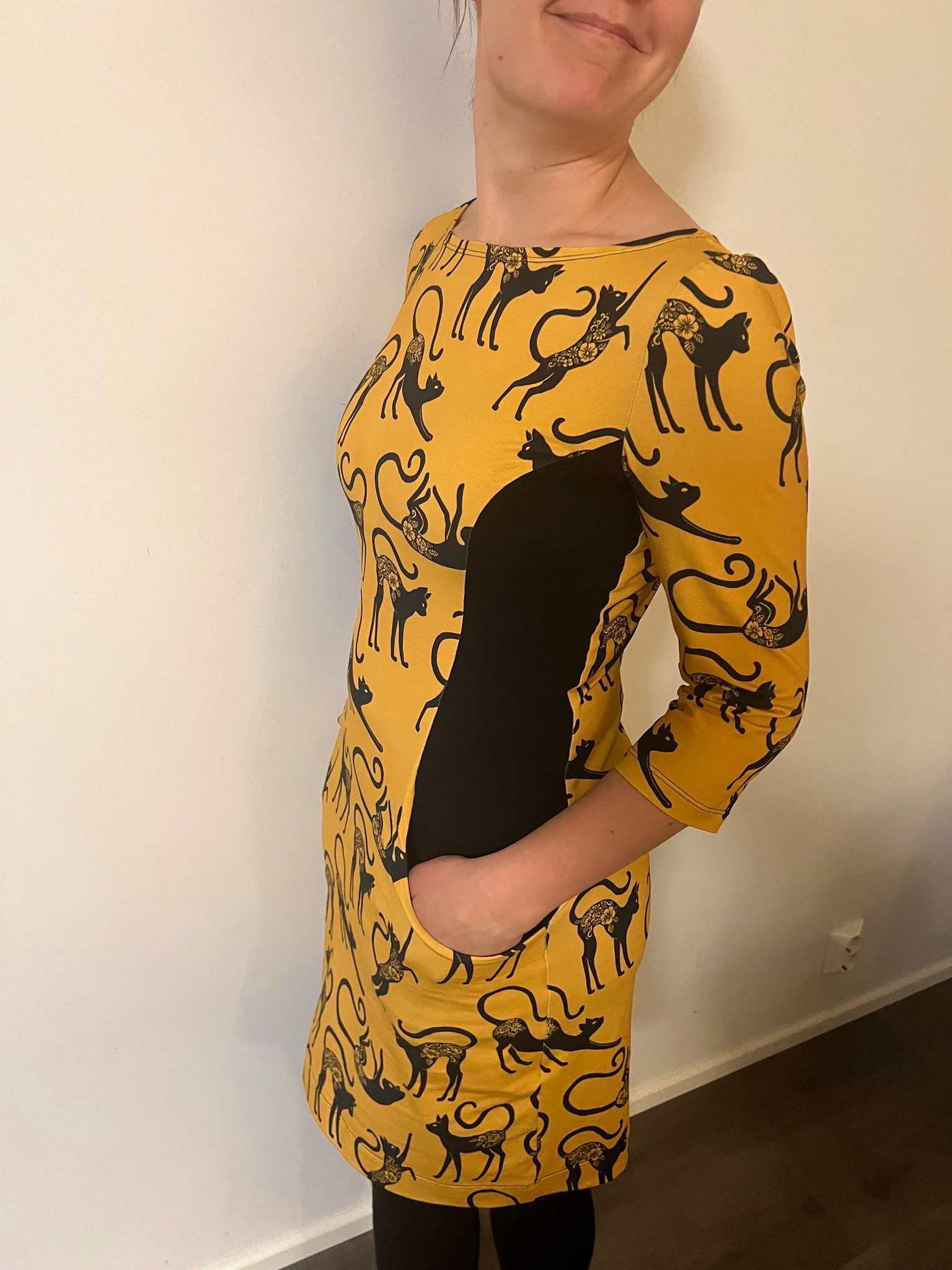 Laadukas puuvilla-elastan joustocollege. Kissoja, niistä kaikki pitävät, MIAU! 🐈⬛