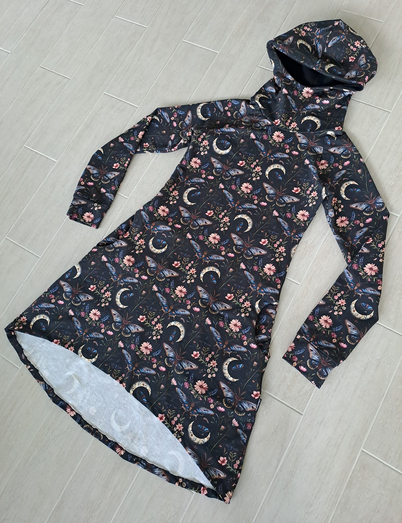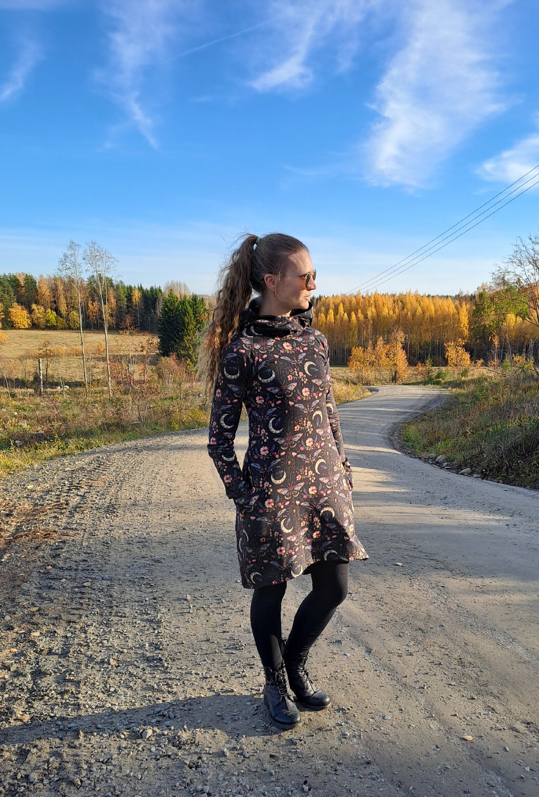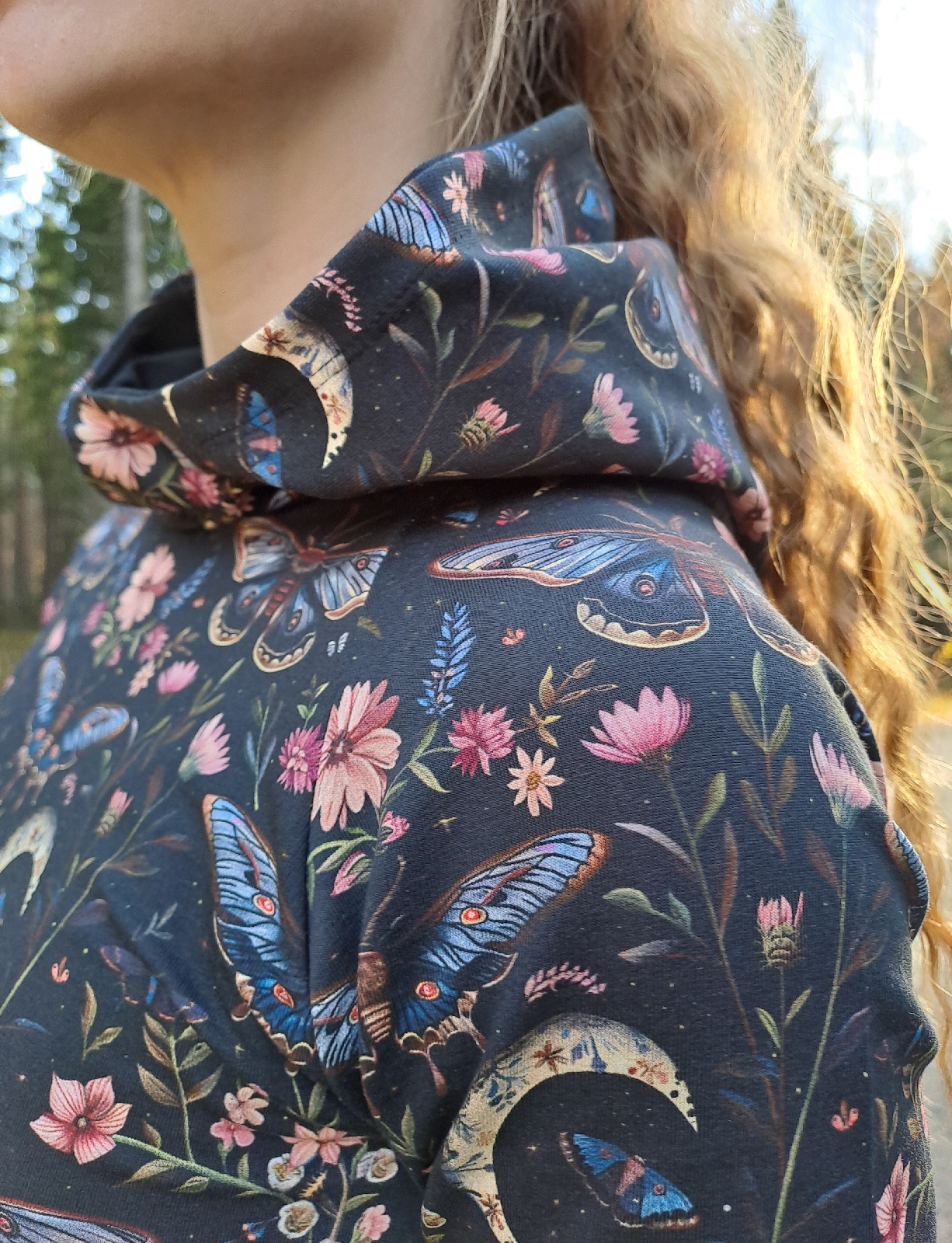 Laadukas puuvilla-elastan joustocollege. Mystistä hehkua Yönpuutarha joustocollegessa 🖤