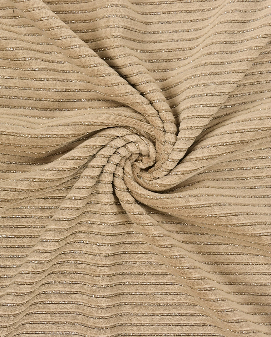 Ihanan pehmeä, laskeutuva, erittäin joustava polyesteri samettitrikoo, niin aikuisten kuin lasten vaateompeluksiin. Sametin vaoissa glitteriä. Juhlavan oloinen trikookangas.