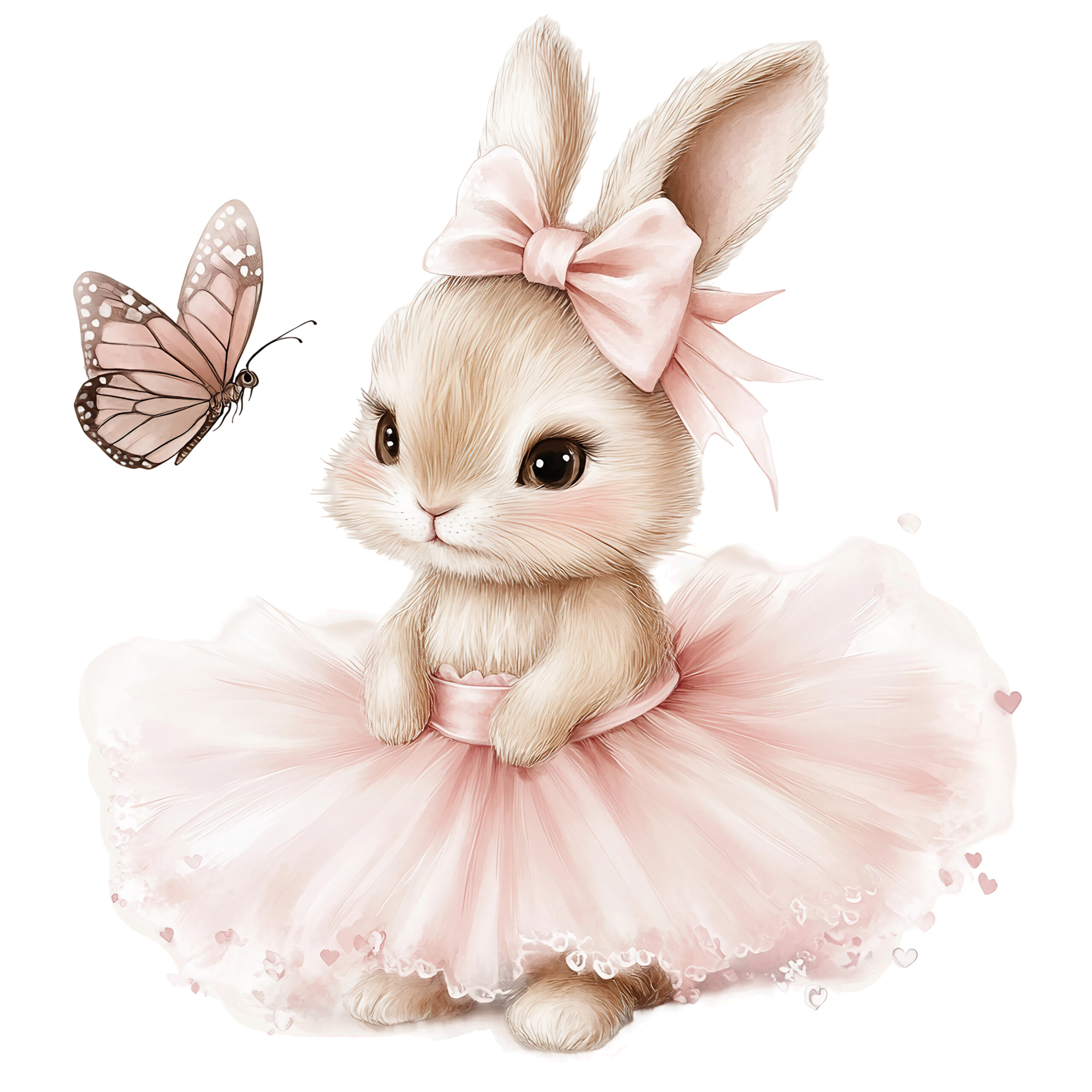 Kankaaseen silitettävä kuvio. Ballerina pupu ja perhonen