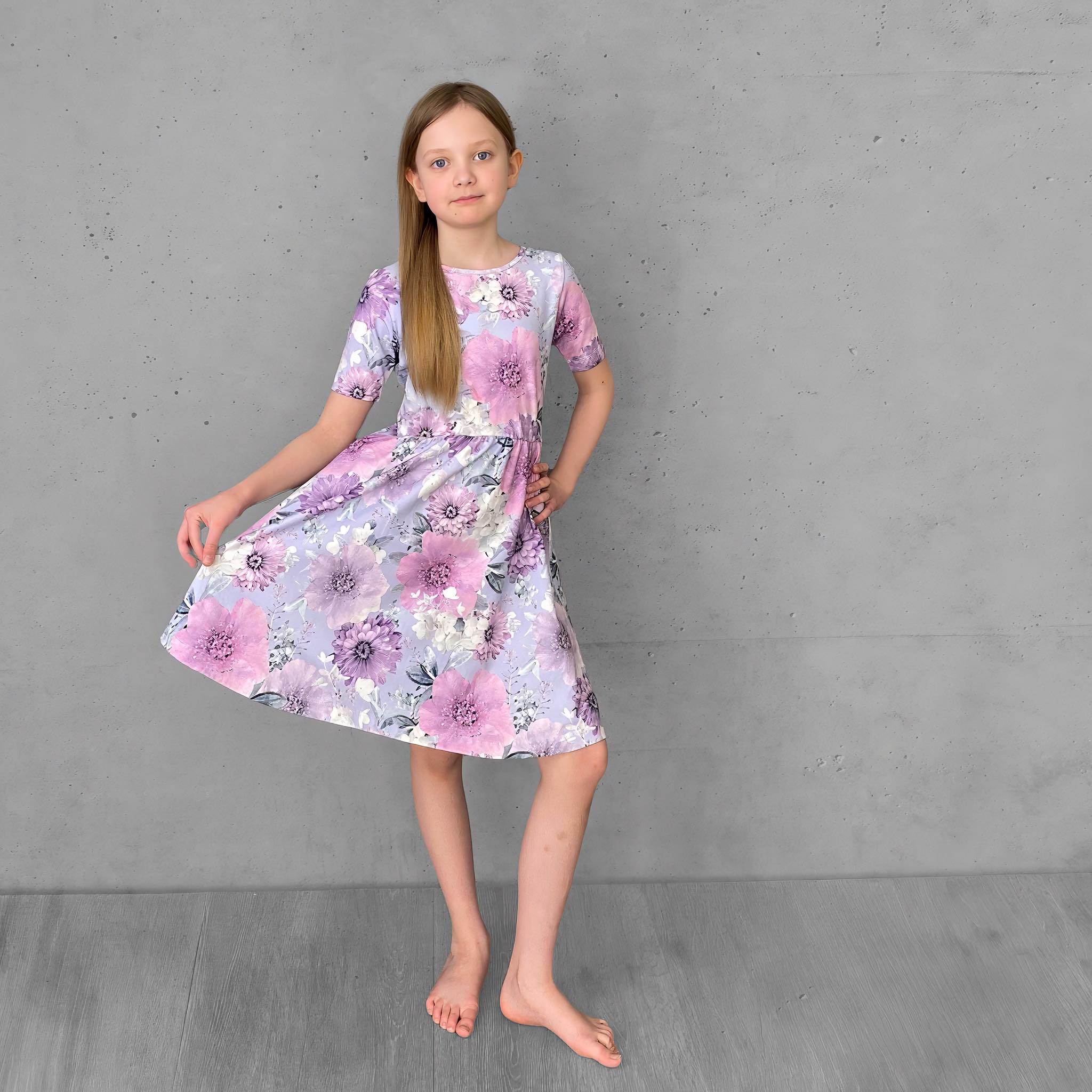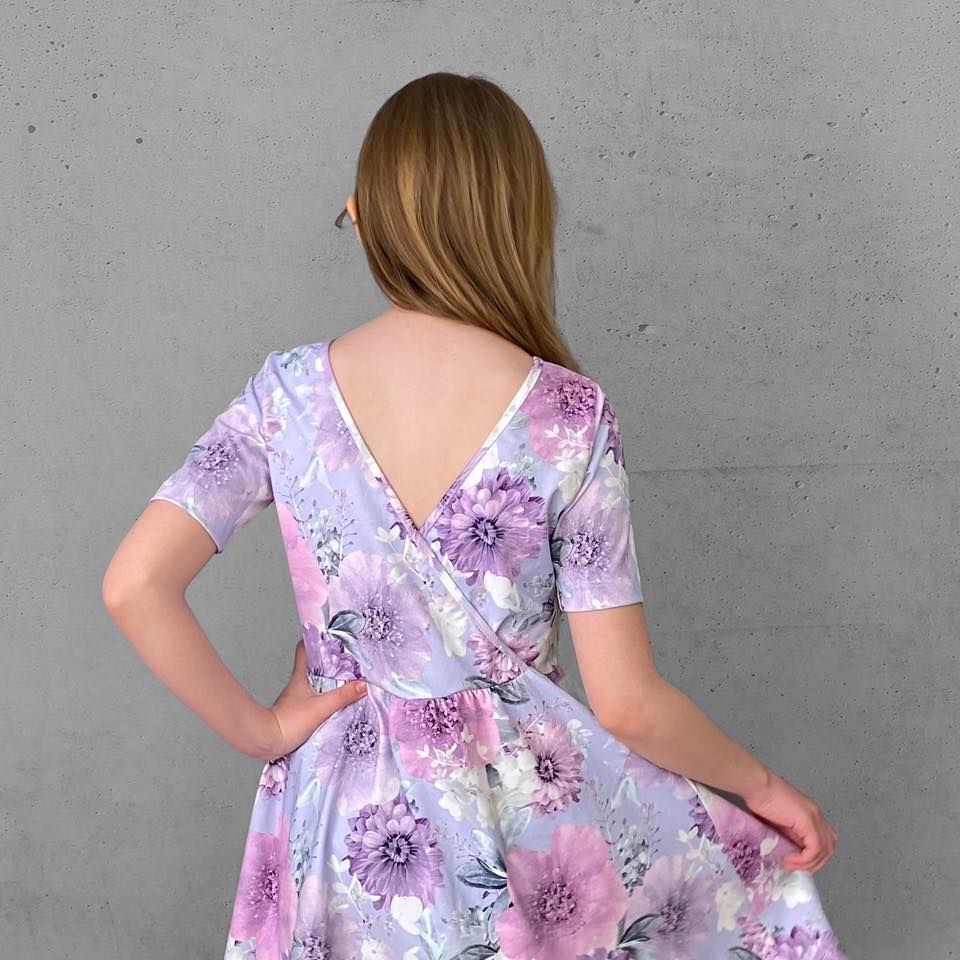 Laaduaks omantuotannon puuvilla elastan trikookangas. Ihanaa vaaleaa laventelia kukkakuosina, Anna 🌸