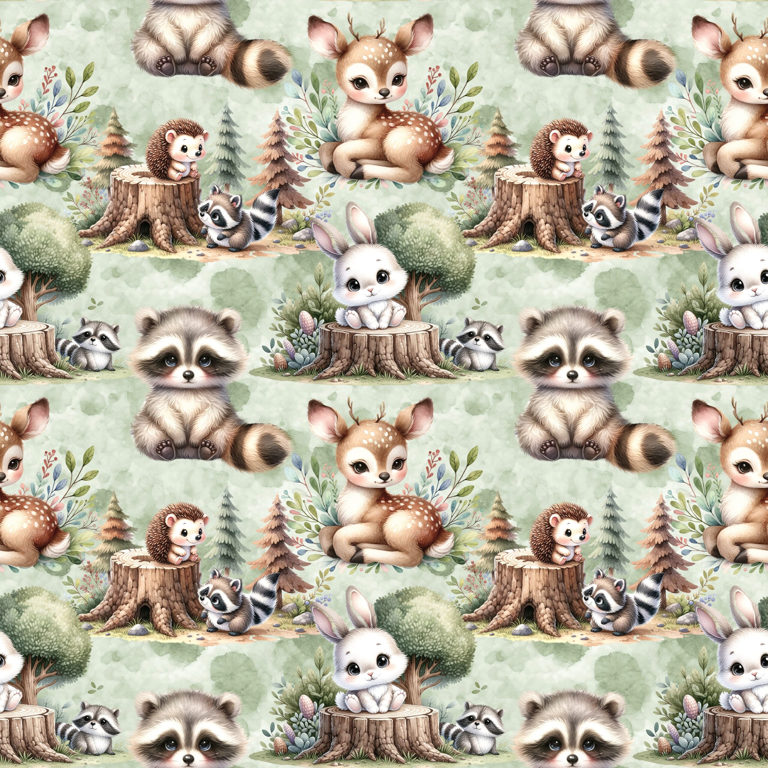 Laadukas  puuvilla-elastan trikoo. Upea luonto metsäneläimineen 🌿