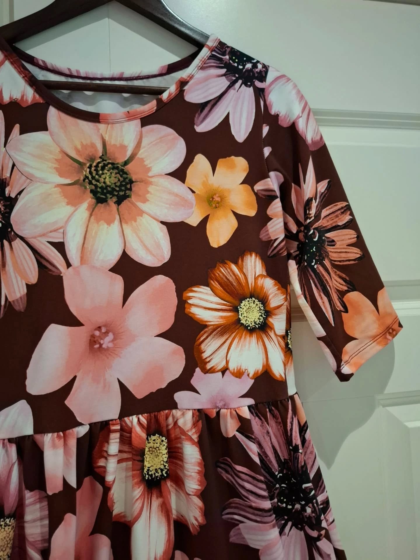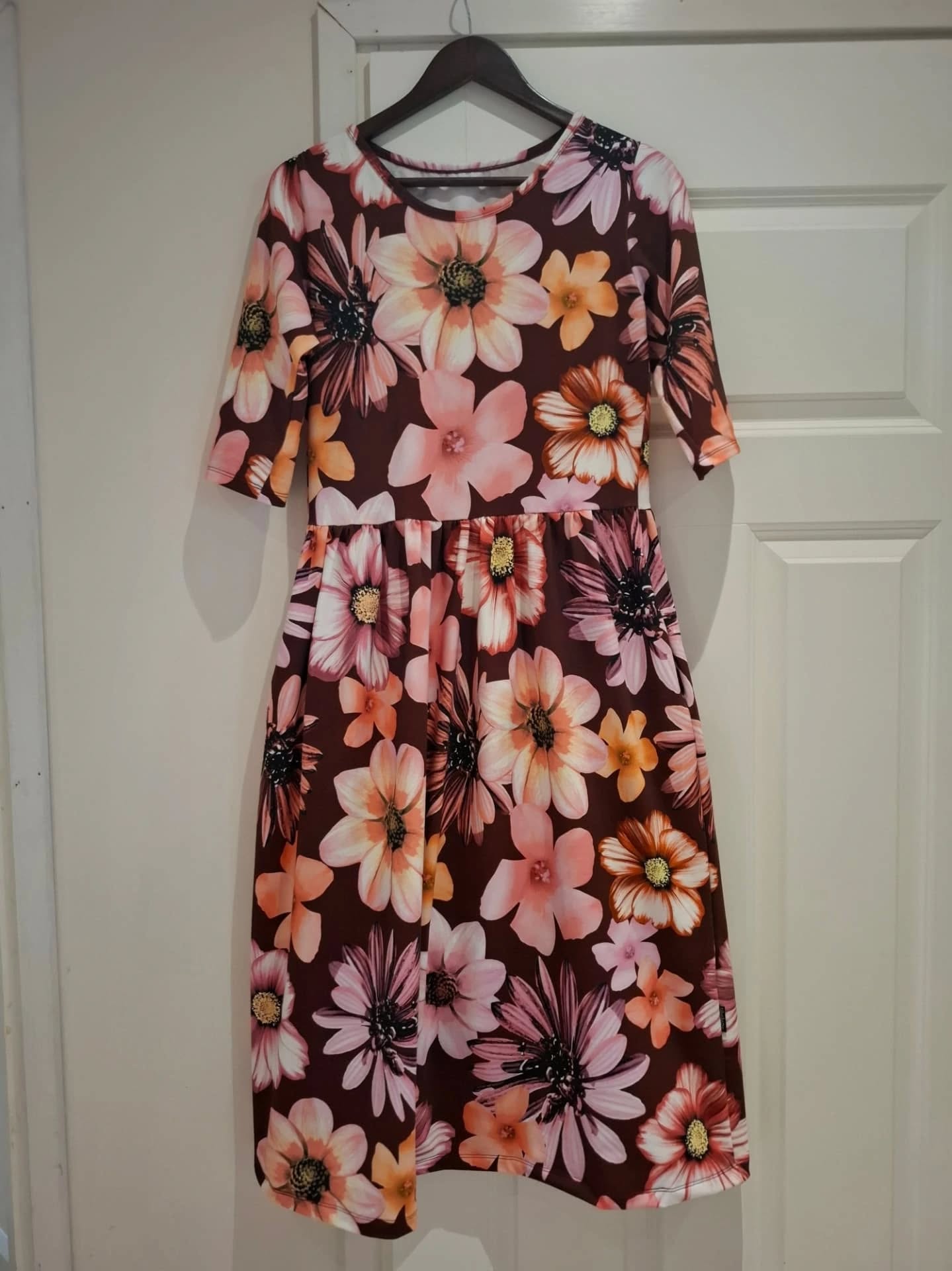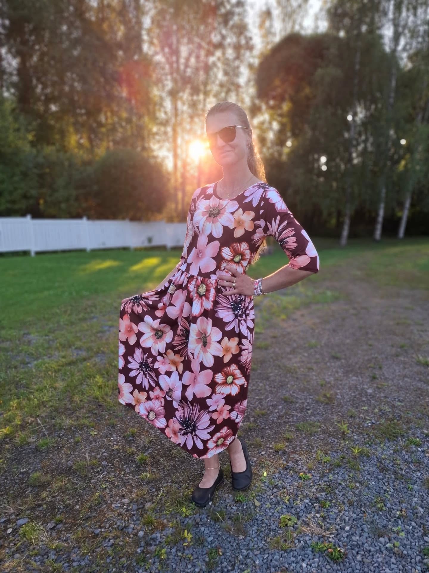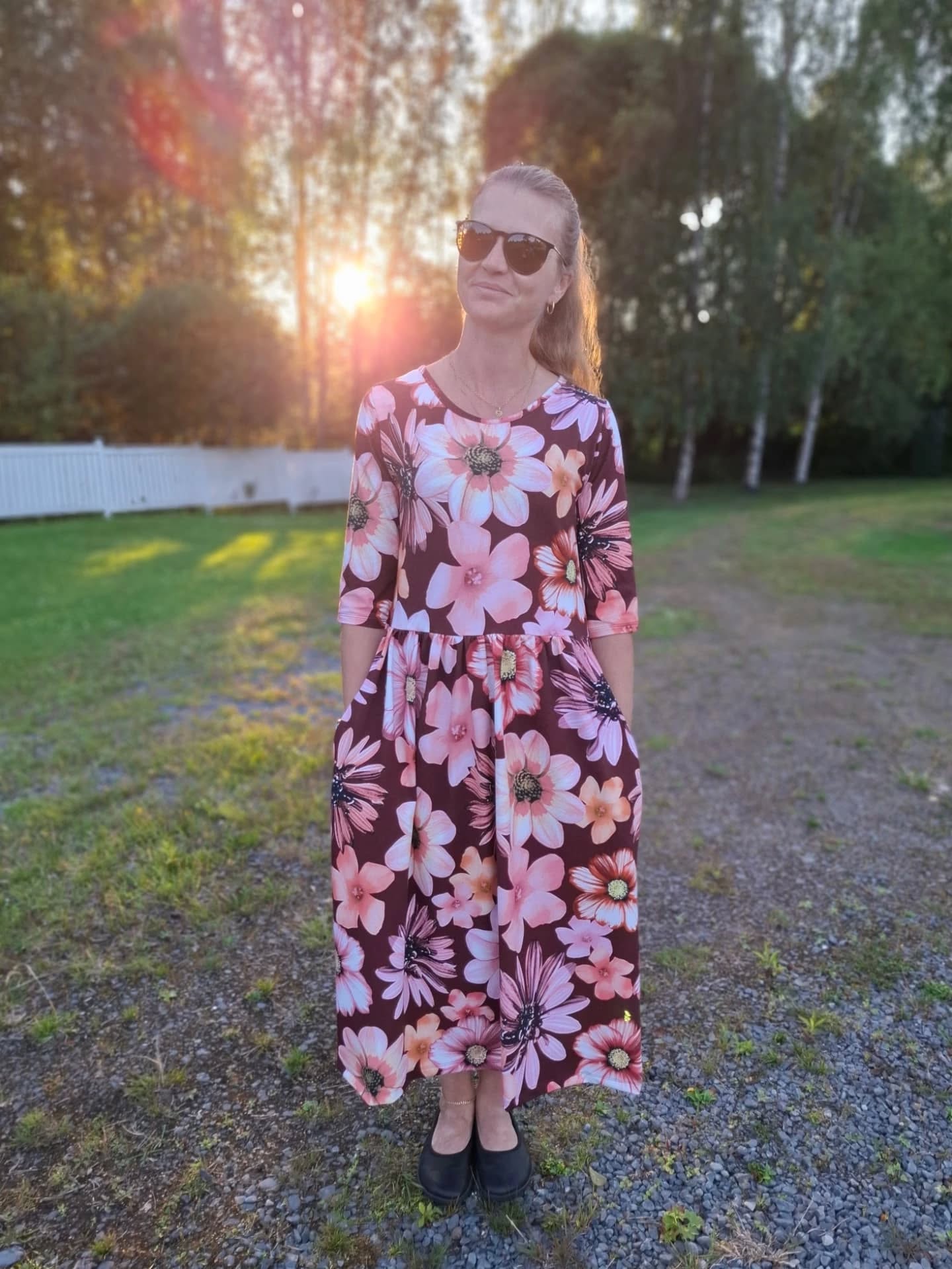 Laaduaks omantuotannon puuvilla elastan trikookangas. Nyt upeat kukat jättikokoisena!