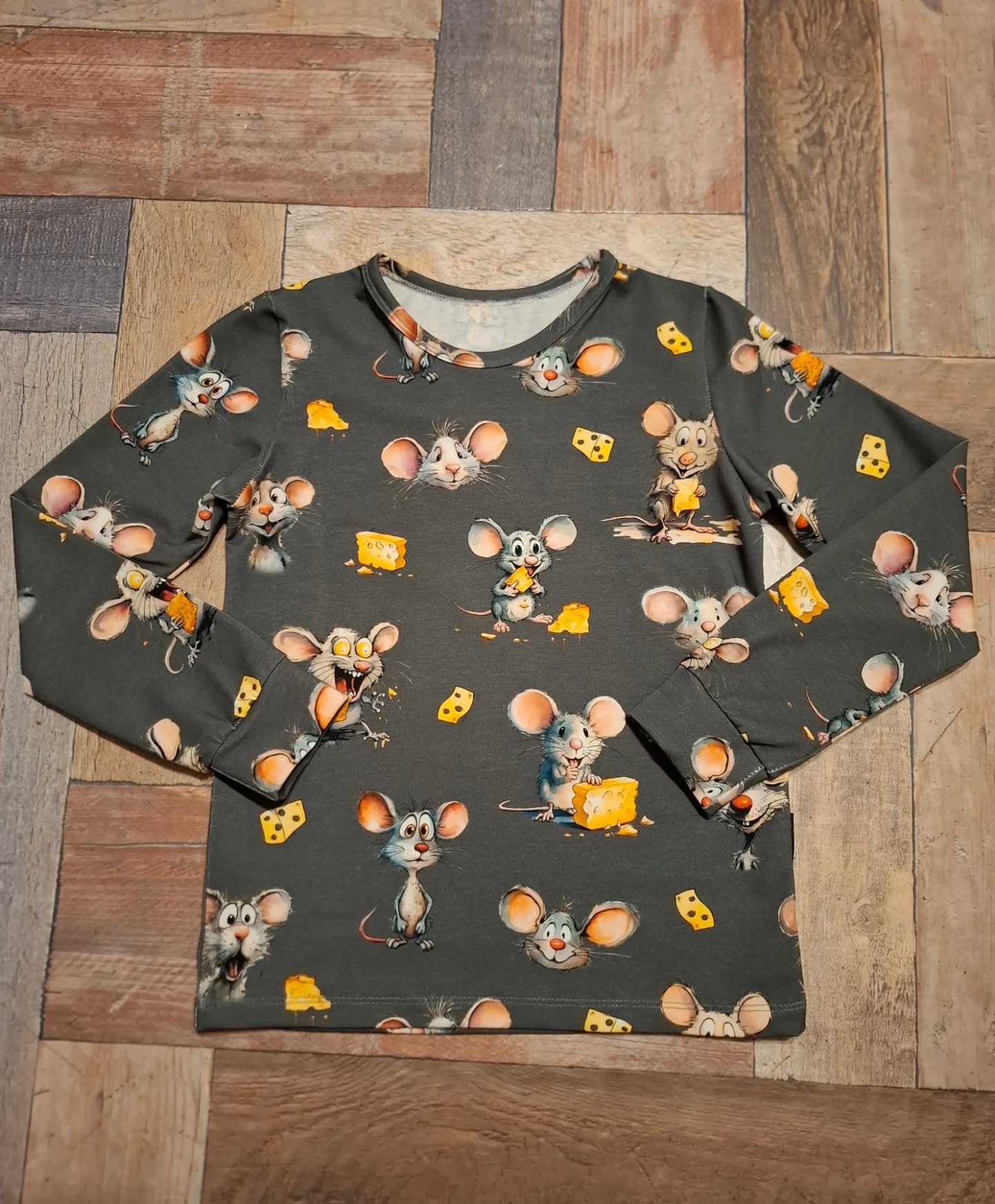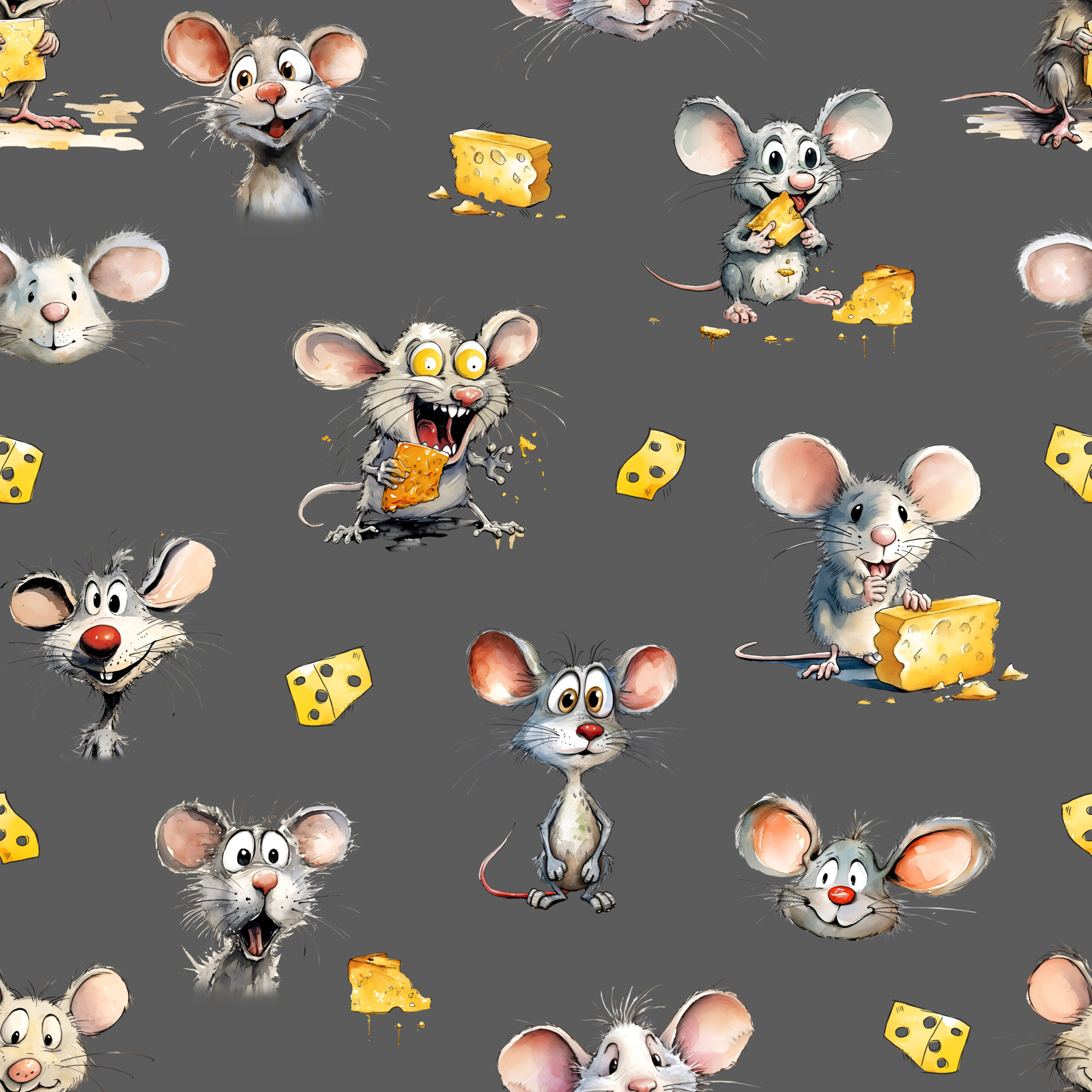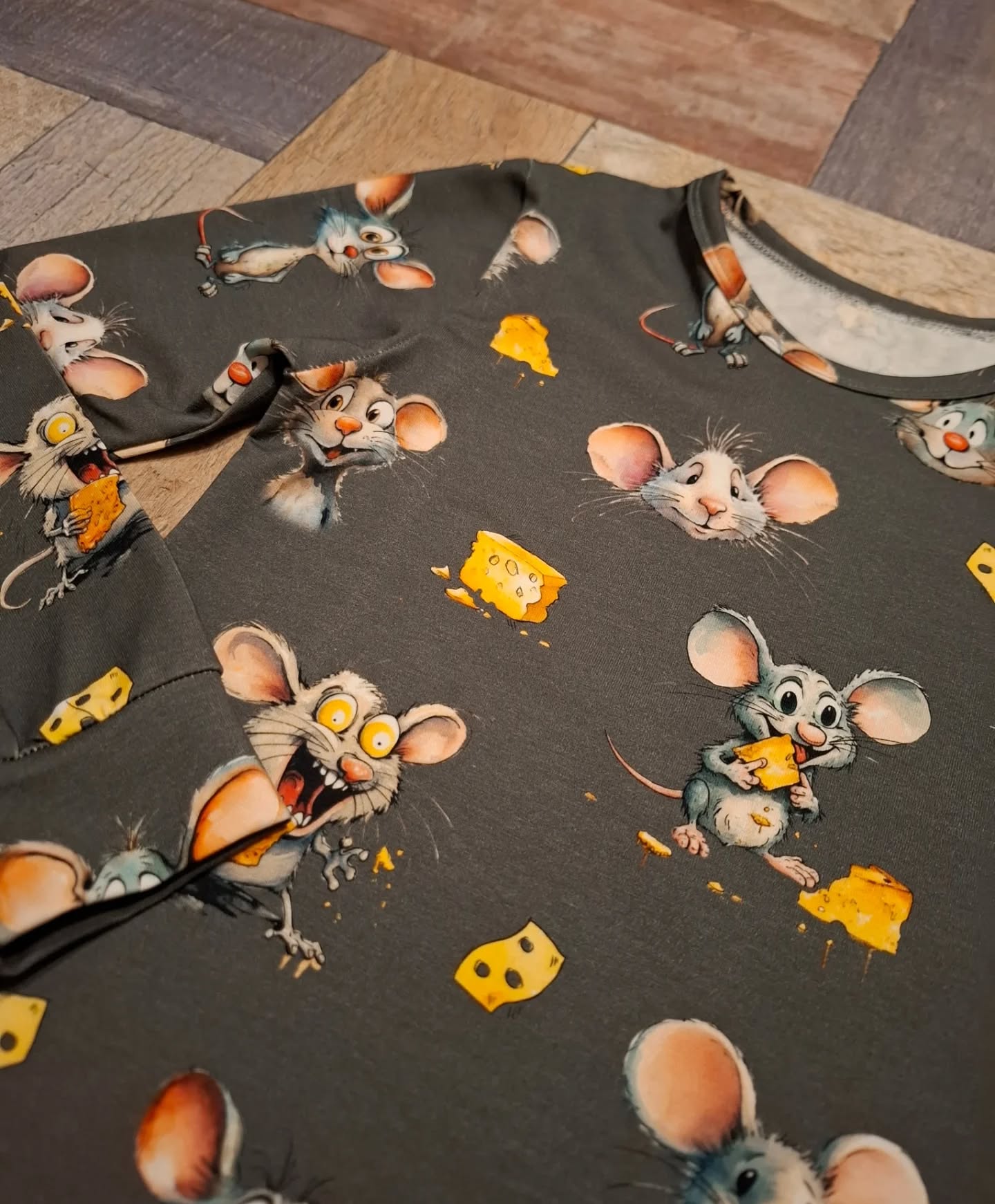 Puuvilla-elastan trikoo kangas. Pikku hiirulaiset juustopalan kimpussa – Juustohullut, vik!