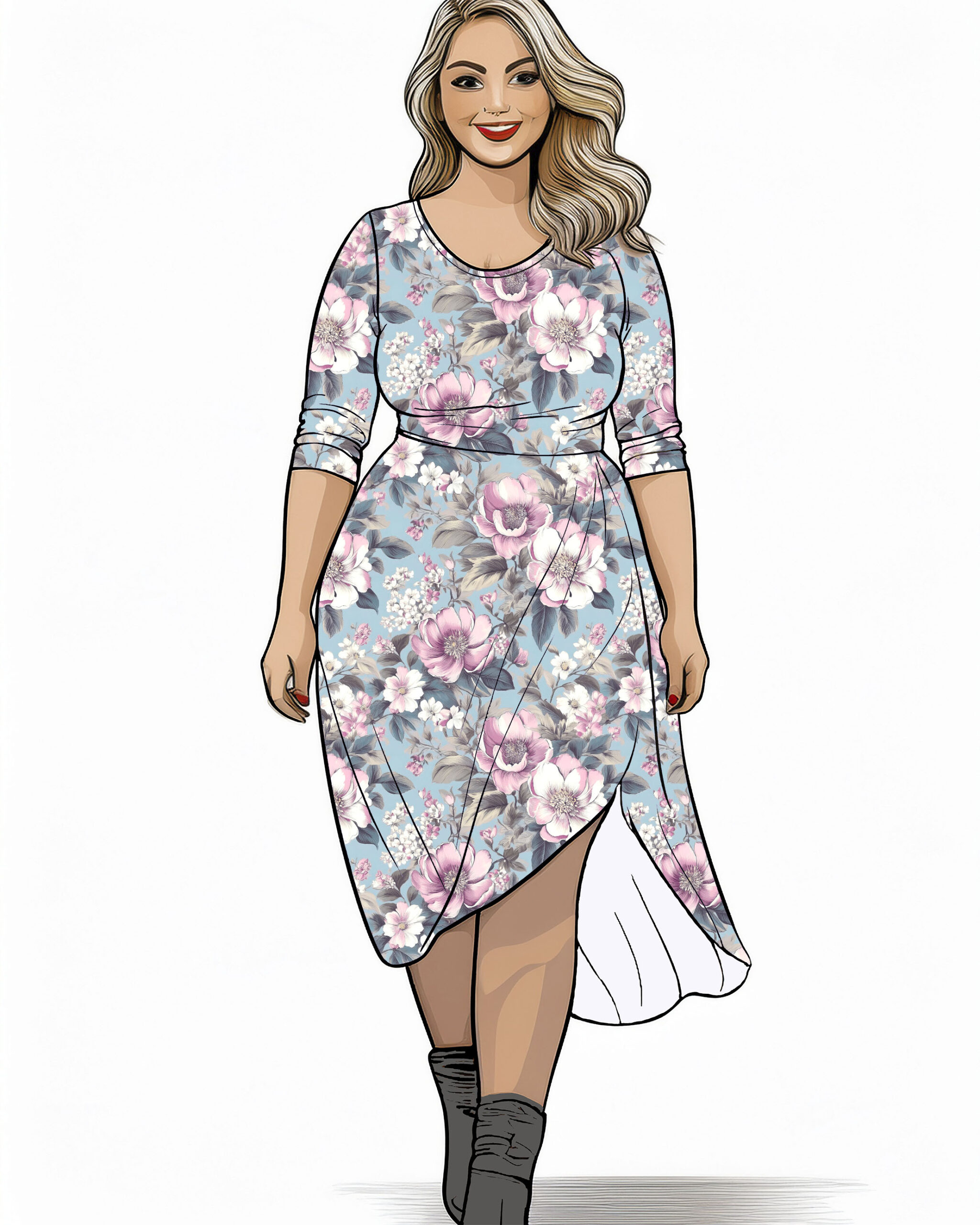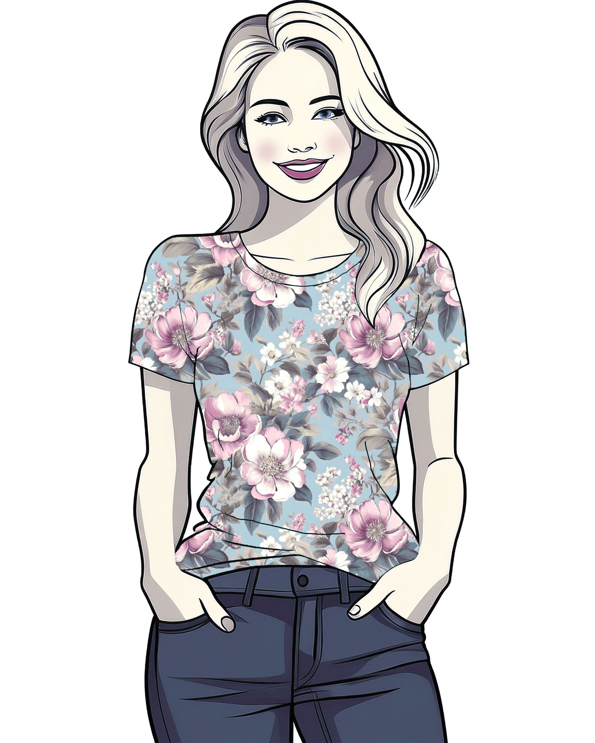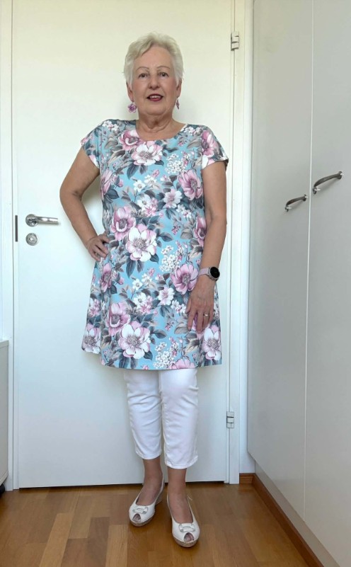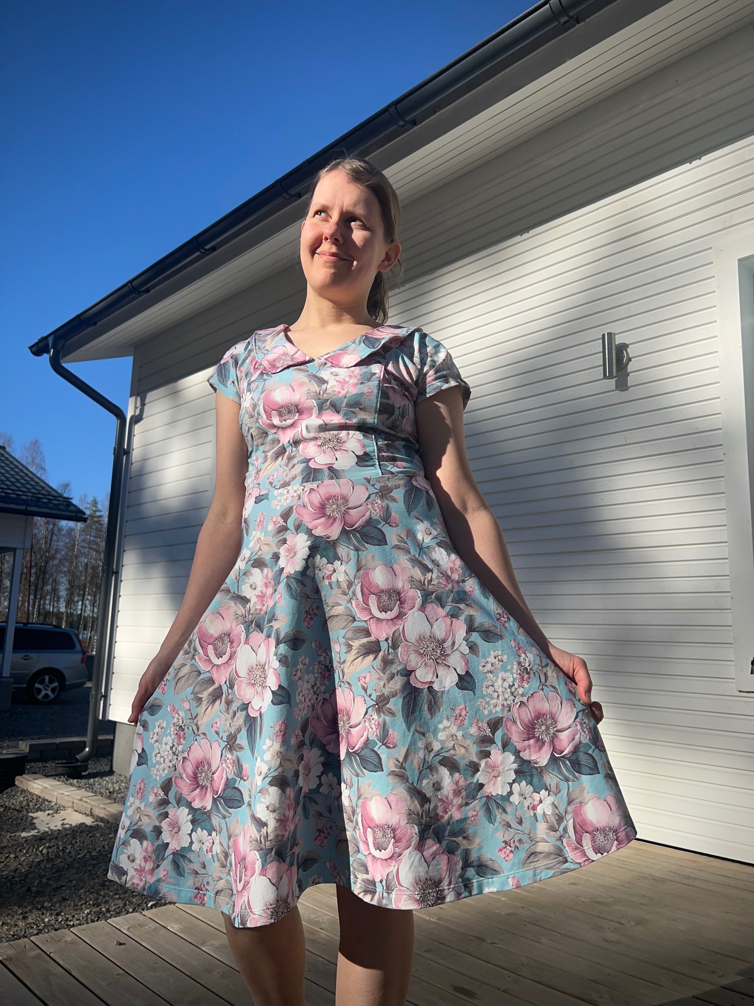 Laadukas omantuotannon puuvilla elastan trikookangas. Oi, todella upeat nostalgiset kukat, trikookankaassa 🩵