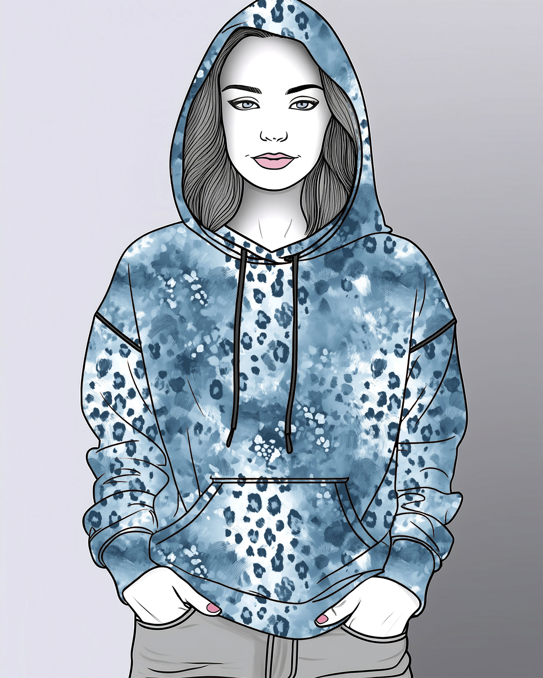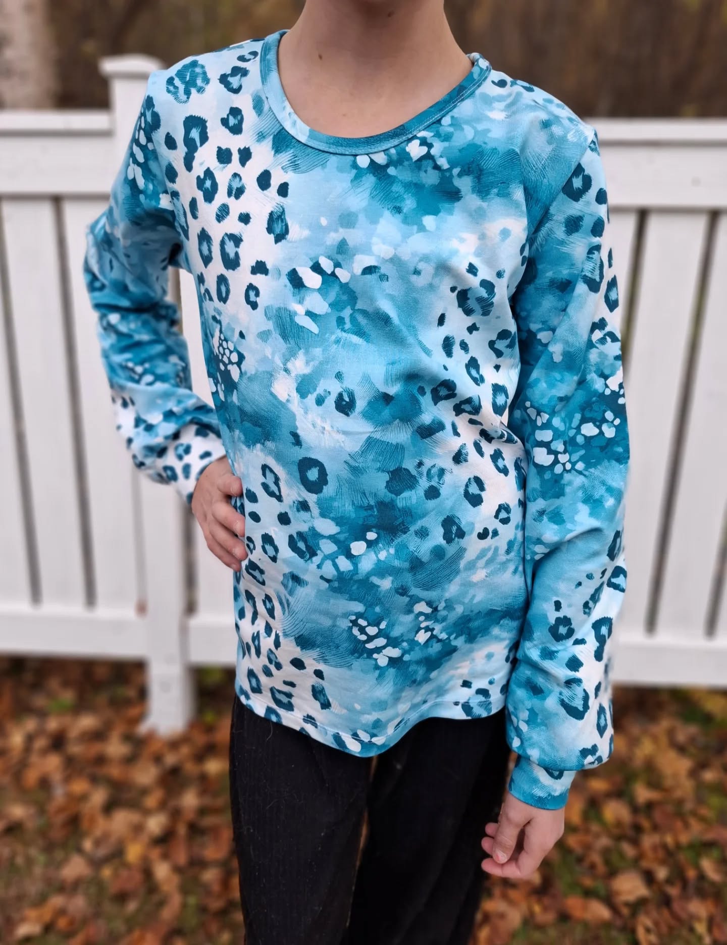 Digital puuvilla-elastan trikoo. Nyt upeaa eläinkuosia pantteria, akvamariinin sinisenä 🩵