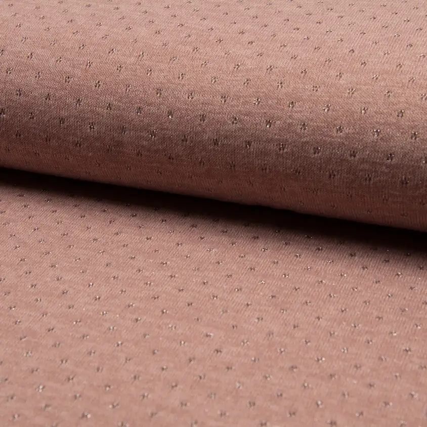 Joustava, pehmeä polyesteri trikooneulos, jossa hopeisia kuviointeja. Tästä ompelet mukavia puseroita, nuttuja ym. sopii kaikenlaiseen vaatetusompeluun.